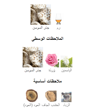 مكوناته المتوسطة هي السوسن والورد والياسمين.