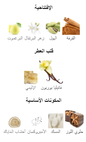 مقدمة العطر:البارغموت الإيطالي، القرفة من سيلان، زهر البرتقال والهيل من جواتيمالا.