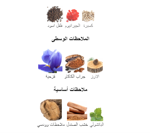 أما قاعدة التكوين فتختتمها لتستقر مع الملاحظات الخشبية، الباتشولي وخشب الصندل.