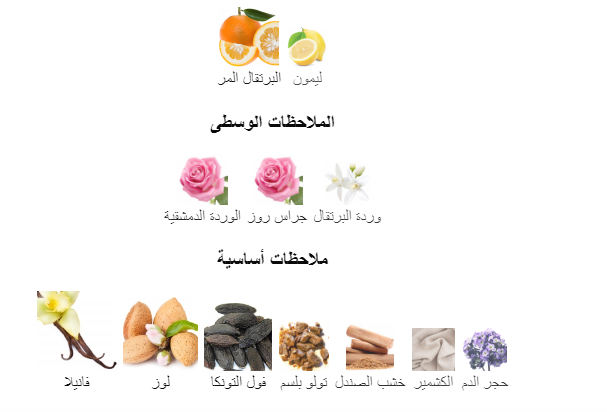 مكوناته المتوسطة هي ورد مايو من Grasse والورد الدمشقي.