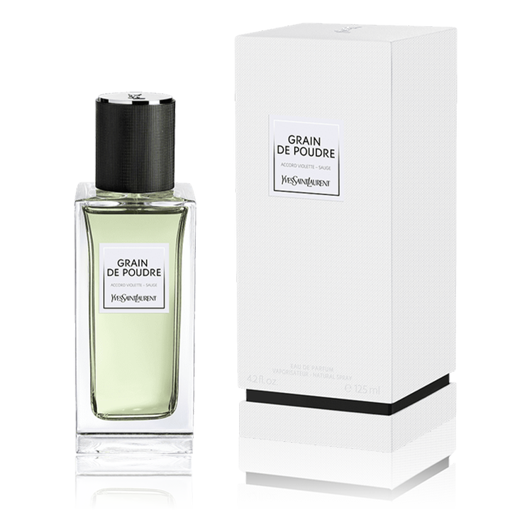 Grain de Poudre Yves Saint Laurent عطر الجلود للجنسين. Grain de Poudre صدر عام 2019. Quentin Bisch قام بتوقيع هذا العطر. إفتتاحية العطر الفلفل الأسود و الكزبرة; قلب العطر أوراق البنفسج و المريمية; قاعدة العطر تتكون من جلد الغزال (الجلد المدبوغ) و المسك.