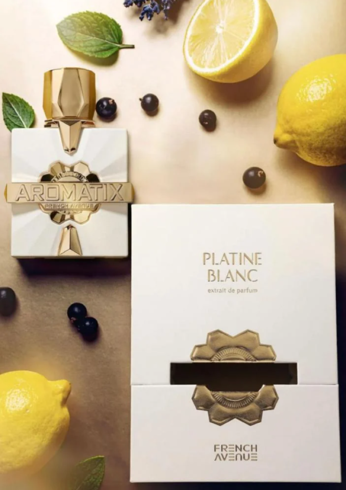 Platine Blanc Aromatix X French Avenue عطر زهري للجنسين. هذا عطر جديد Platine Blanc صدر عام 2025. إفتتاحية العطر الليم - الزيزفون, النعناع, الليمون و Tonic المياه; قلب العطر الكشمش الأسود, إكليل الجبل و الياسمين; قاعدة العطر تتكون من الآمبرغريس, خشب الصندل, المسك و طحلب البلوط (طحلب السنديان).
