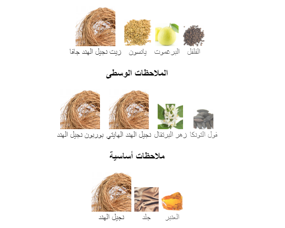قلب العطر نجيل الهند, نجيل الهند, زهر البرتقال و التونكا;