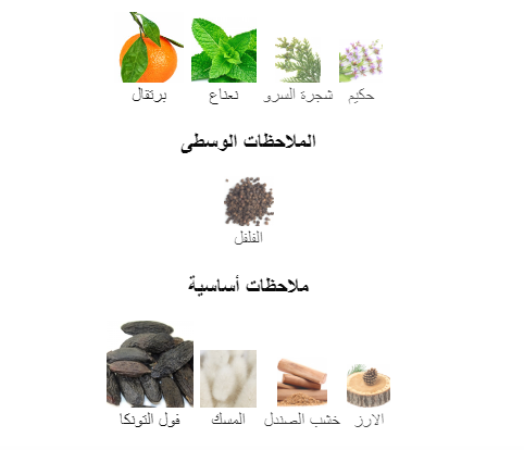 مكوناته العليا هي المندرين الصقلي والنعناع والسرو والميرمية الطينية.